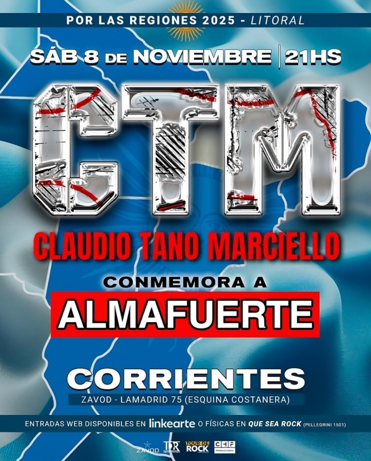 Con una trayectoria marcada por la autenticidad, la técnica y la pasión, el “Tano” Marciello sigue convocando a distintas generaciones de seguidores. Su presentación en Corrientes promete una noche cargada de emoción, historia y puro metal argentino.