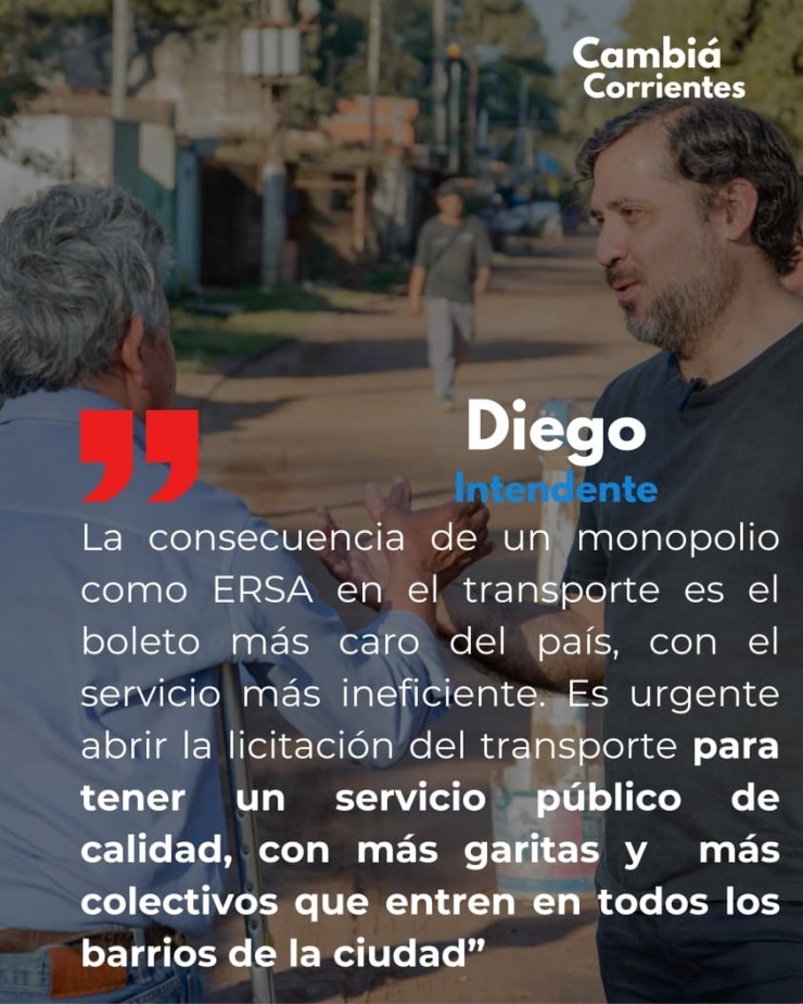 “Lejos de la concepción del actual intendente, que dijo que el transporte público tiende a desaparecer, aspiramos a un nuevo sistema de transporte público moderno, eficiente y de calidad. Que sirva de movilidad para la mayoría de la población, ordene el tránsito en la Capital y disminuya la cantidad de accidentes viales”, concluyó el candidato a intendente por Cambiá Corrientes.