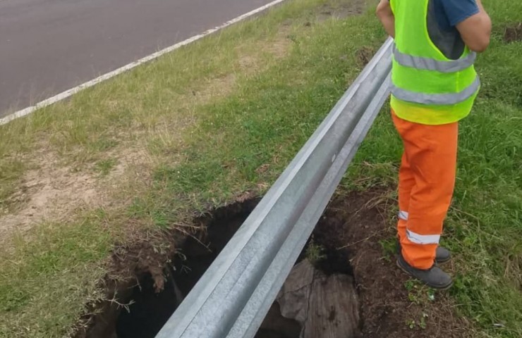 Socavón en la ruta 12 y daños en el aeropuerto de Corrientes por el temporal